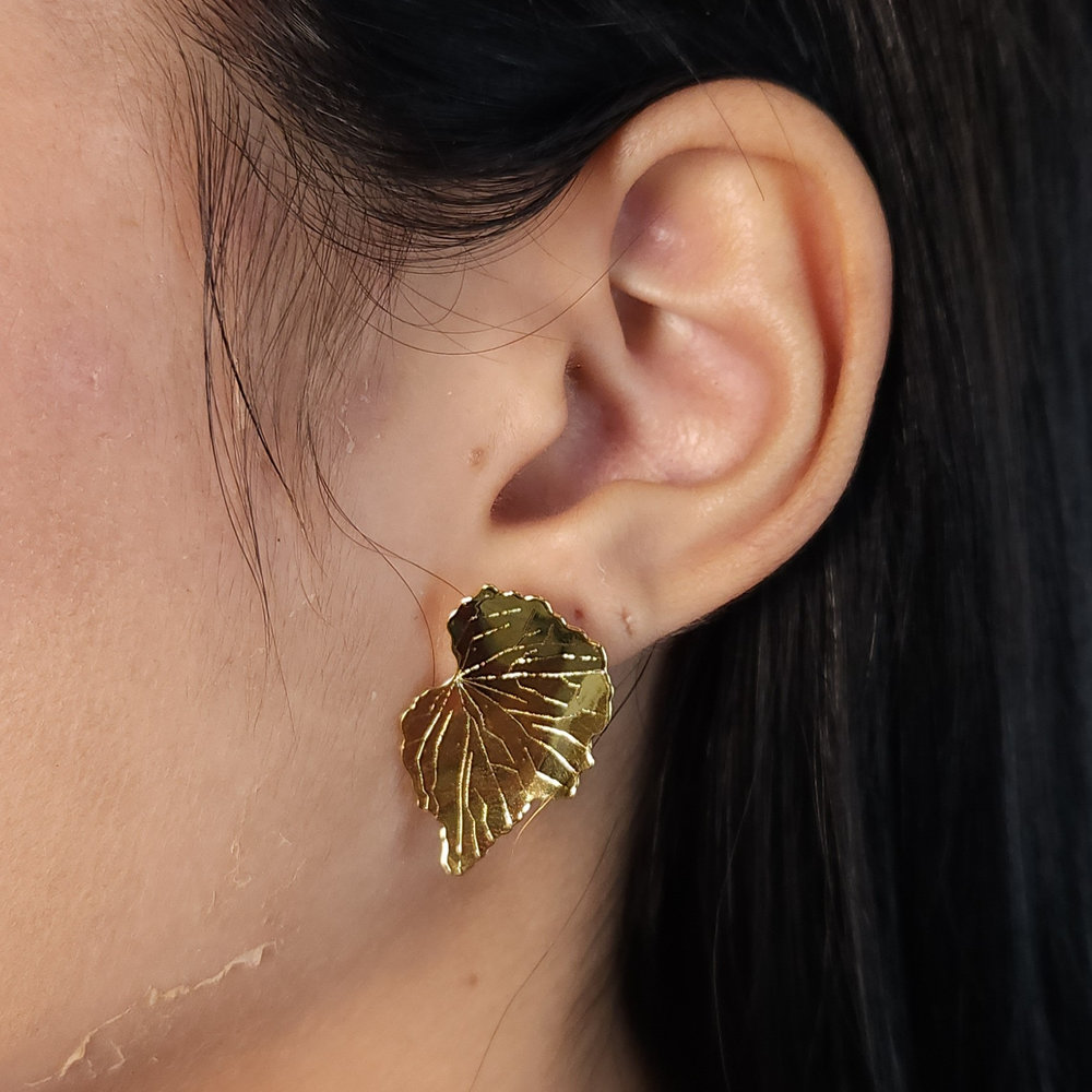 Brinco modelo folha dourado