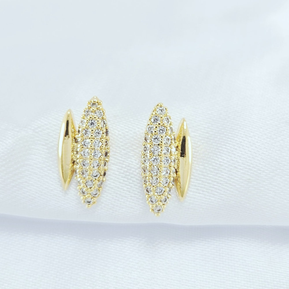 Brinco oval cravejado e liso