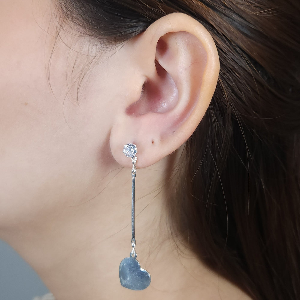 Brinco ponto de luz fio longo coração