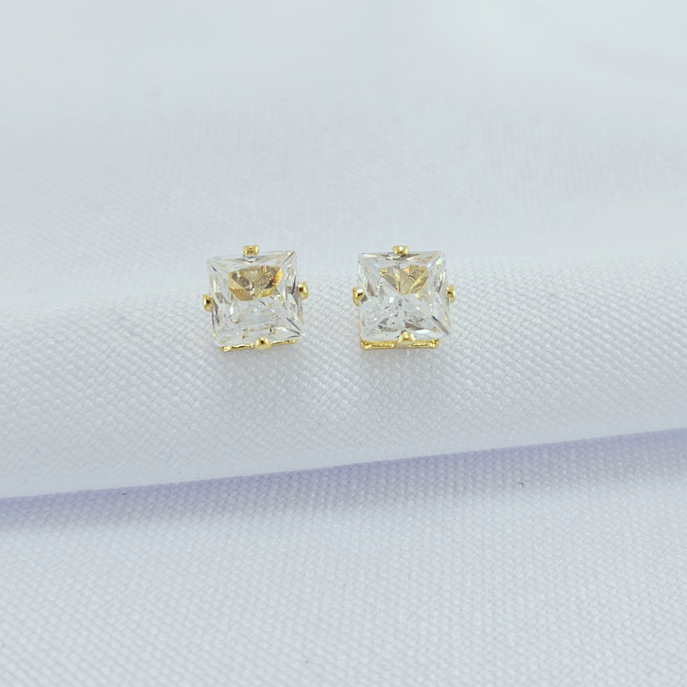 Brinco ponto de luz quadrado cristal