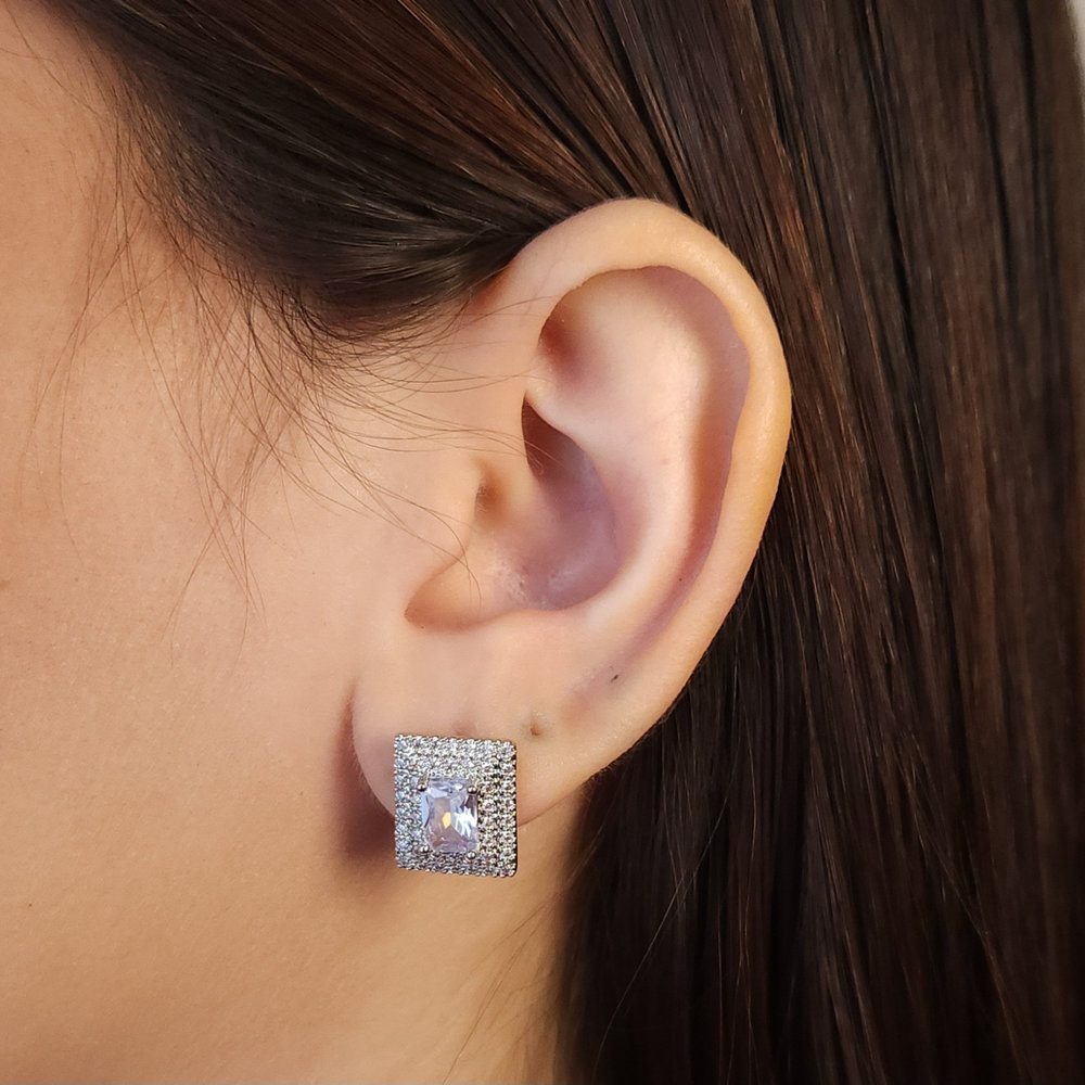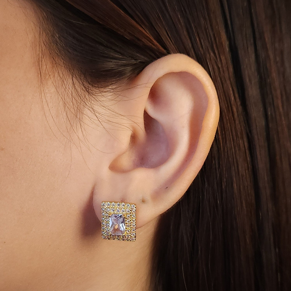 Brinco quadrado com borda cravejado