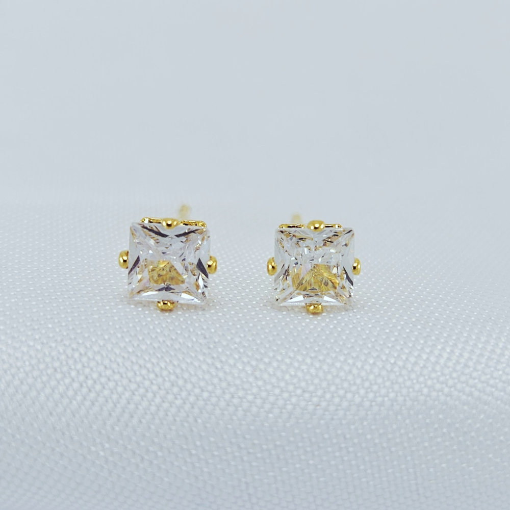 Brinco quadrado pedra cristal