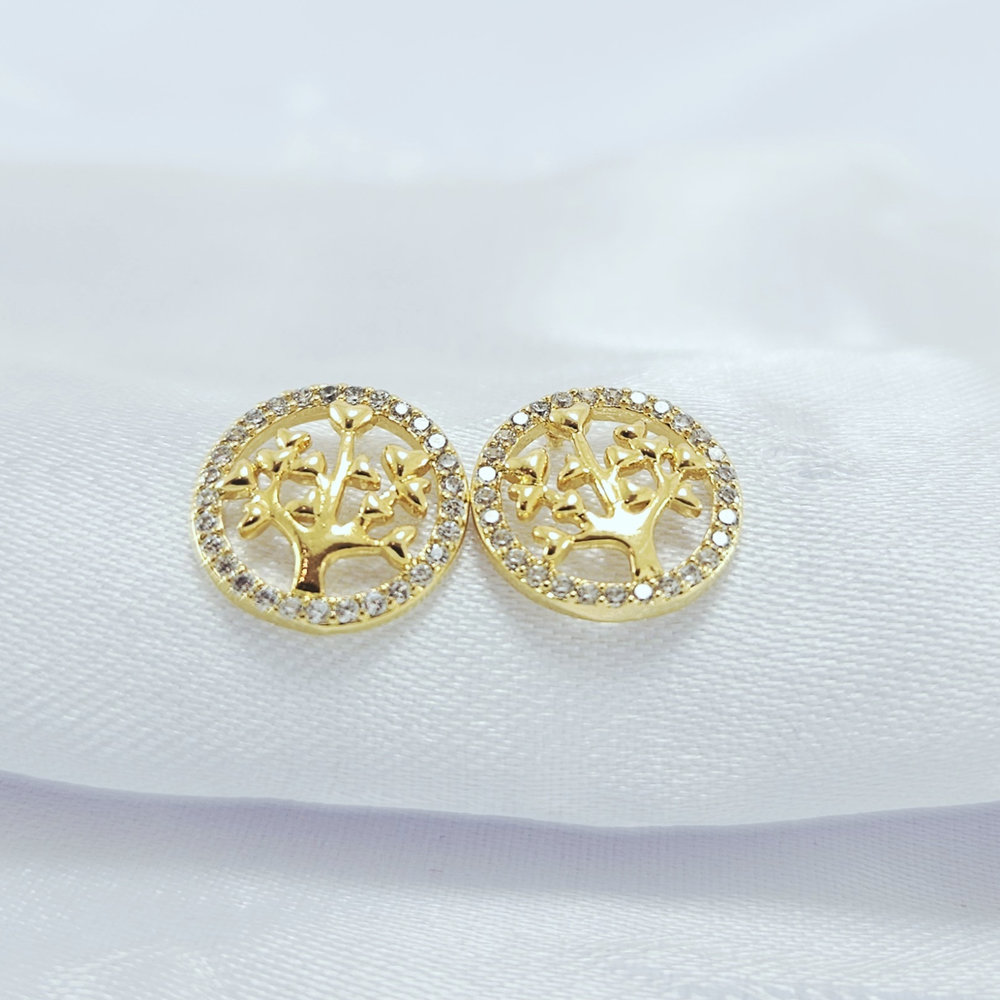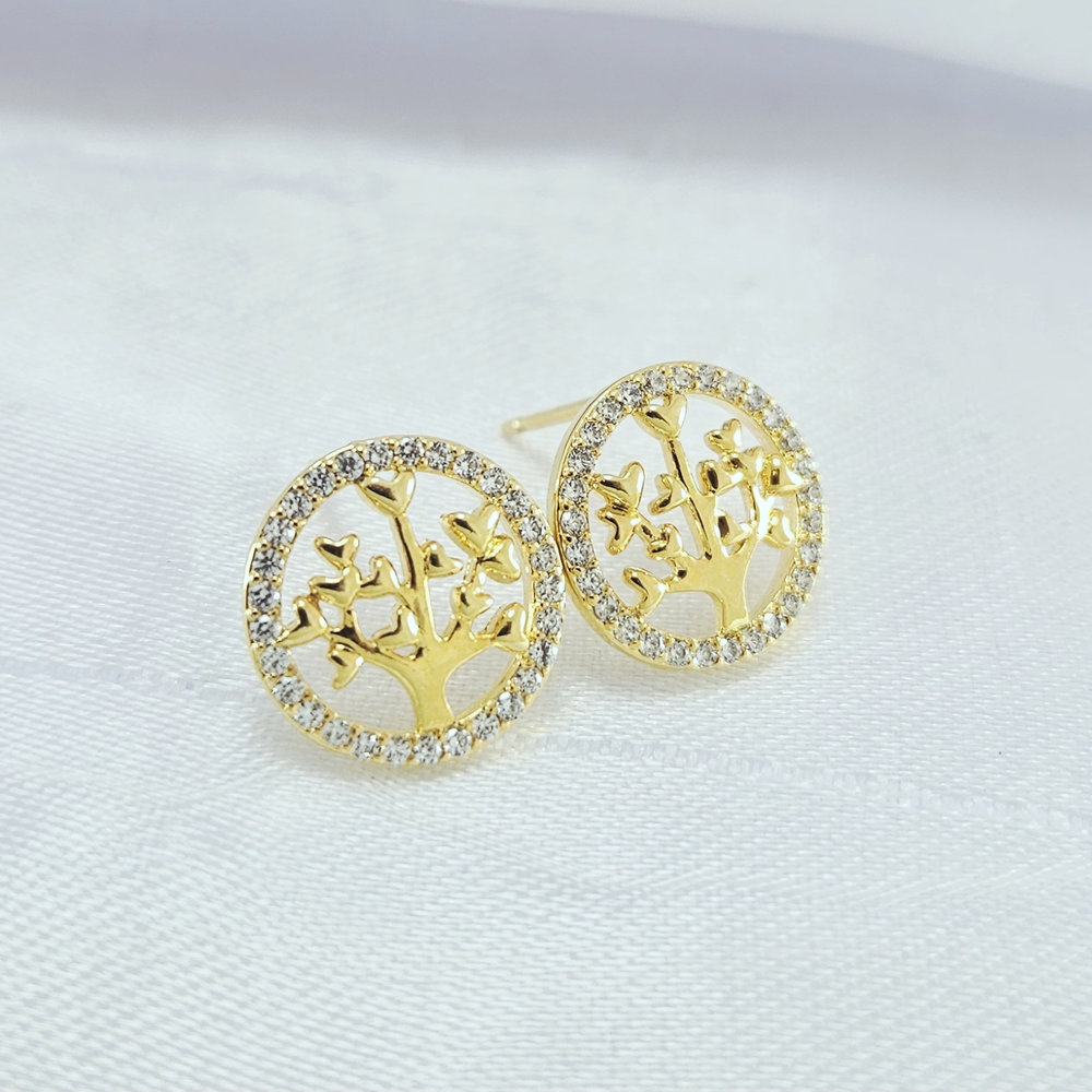 Brinco redondo cravejado com árvore