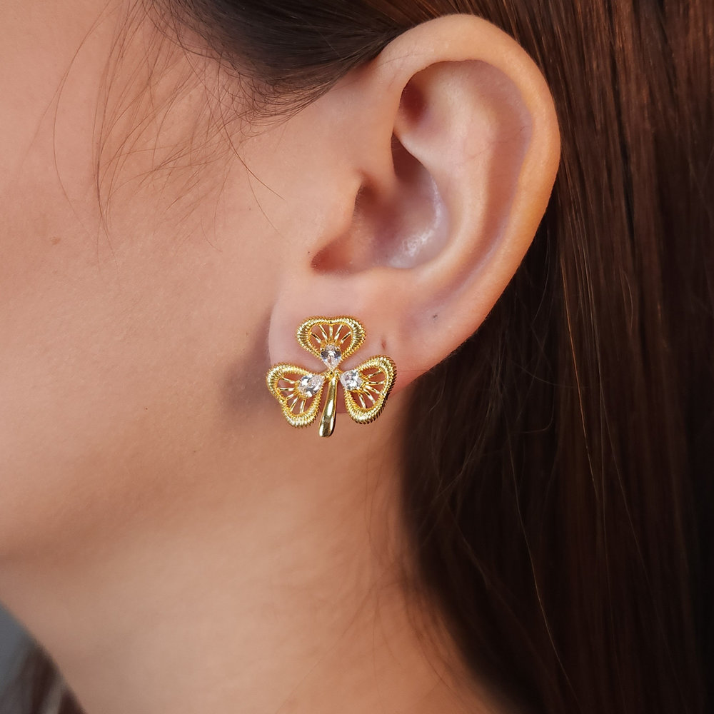 Brinco trevo detalhe vazado com cristal