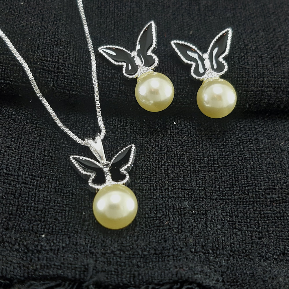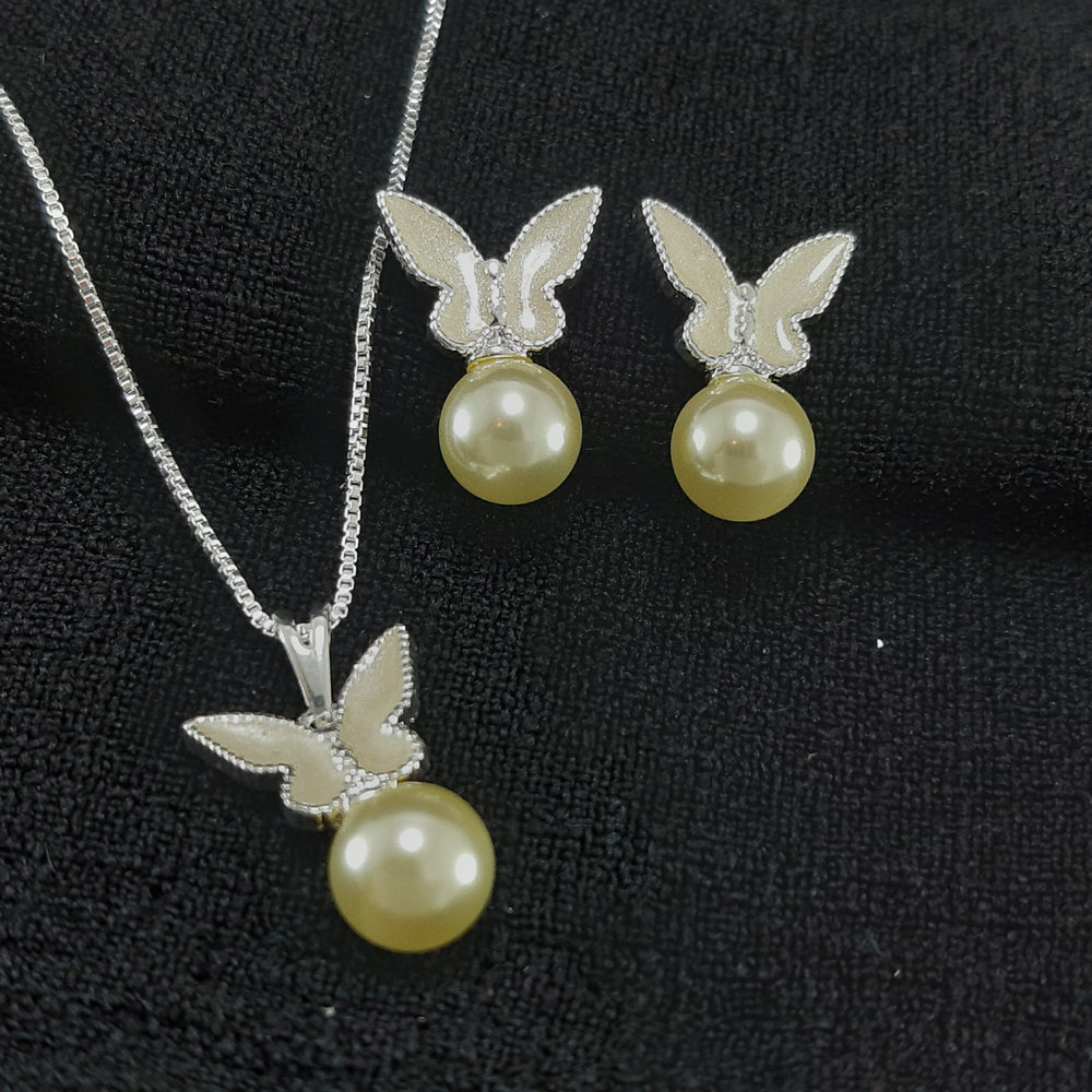 Conjunto borboleta esmaltada com pérola