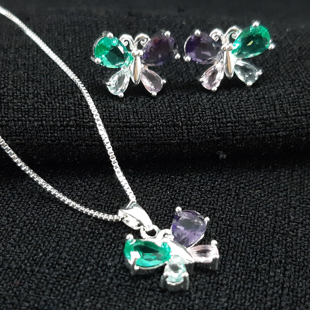 Conjunto borboleta pedras coloridas