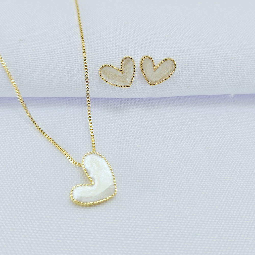 Conjunto coração branco borda detalhada