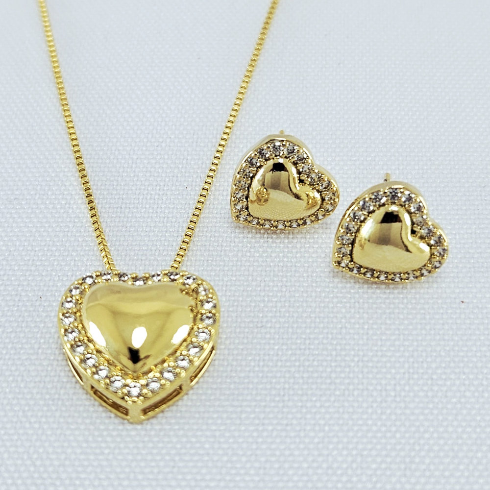 Conjunto coração detalhe cravejado redor