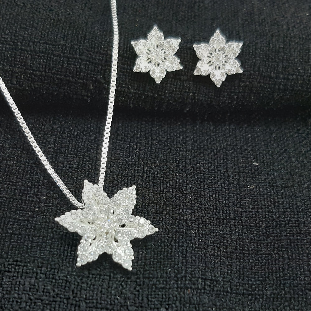 Conjunto flor cravejada prateada