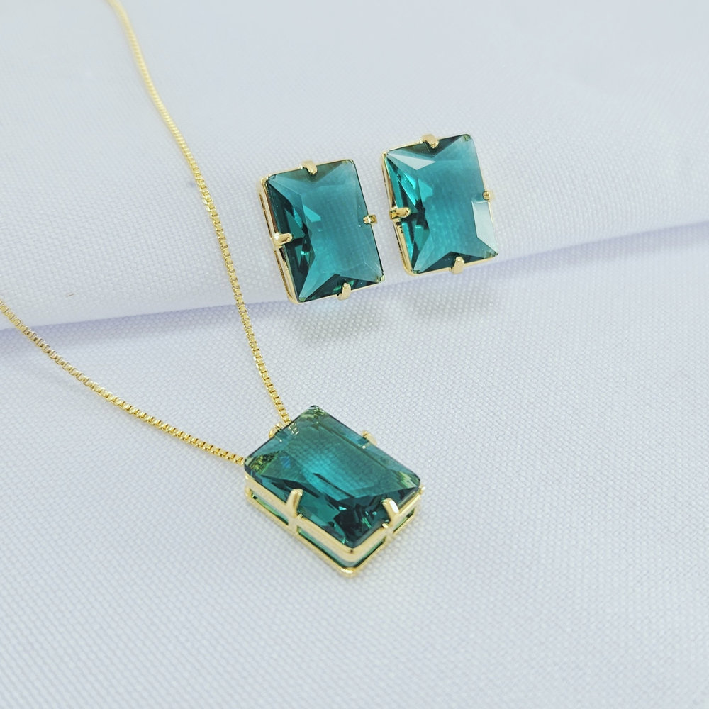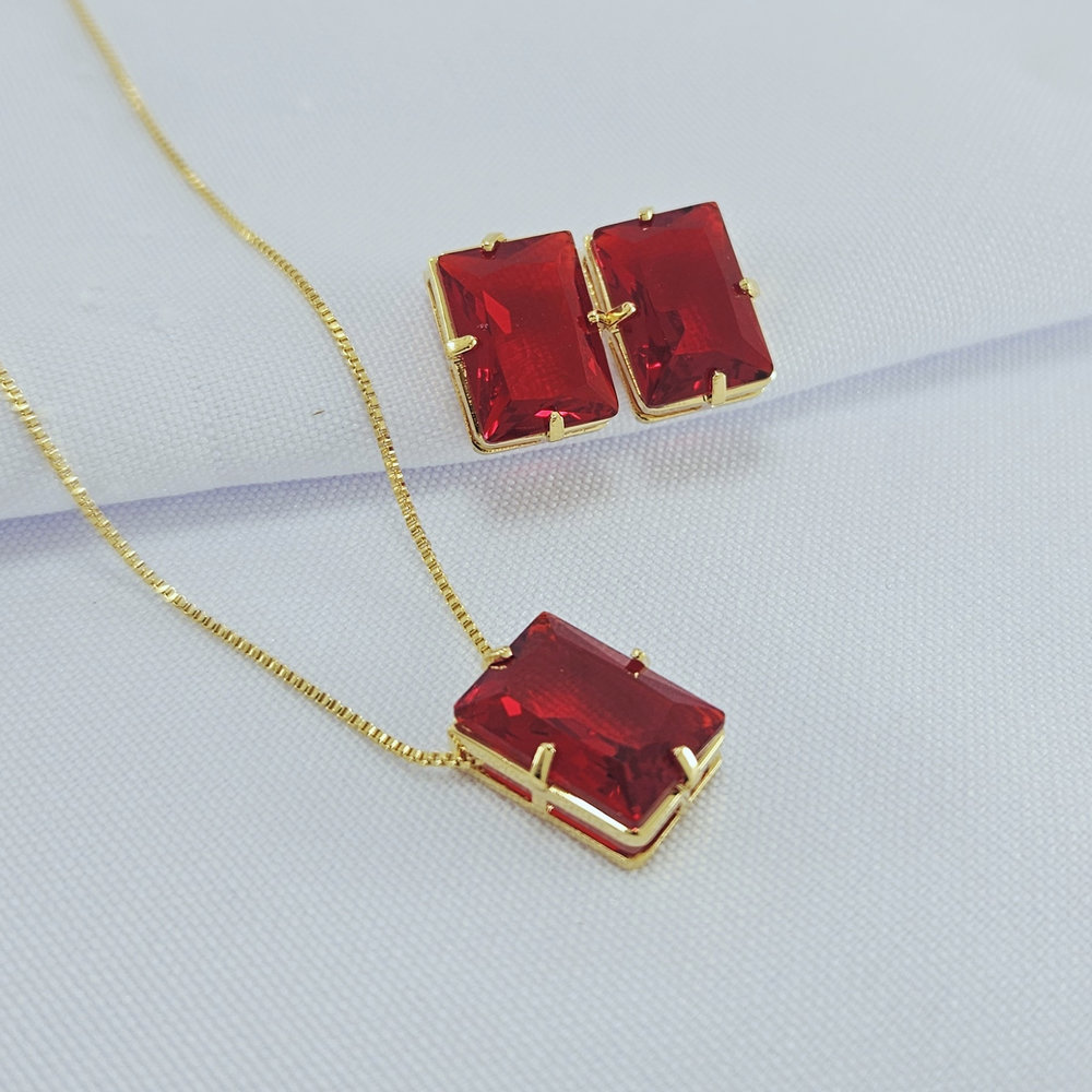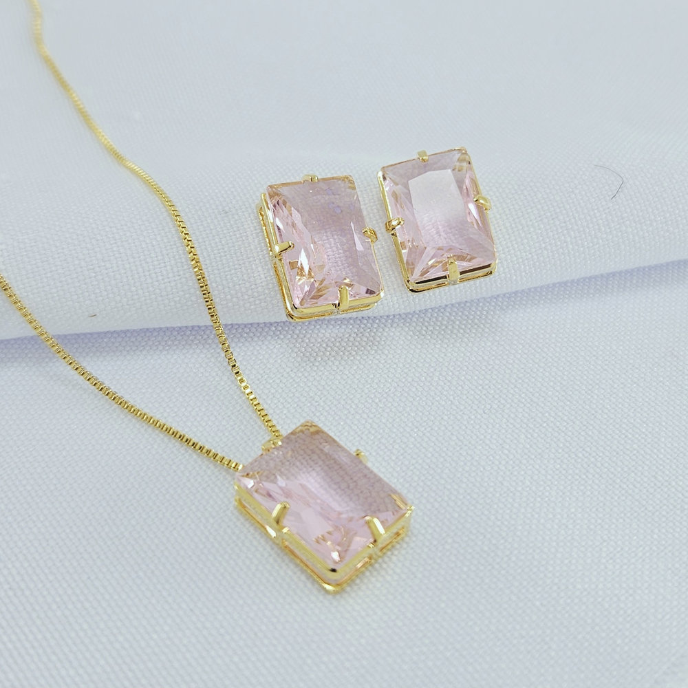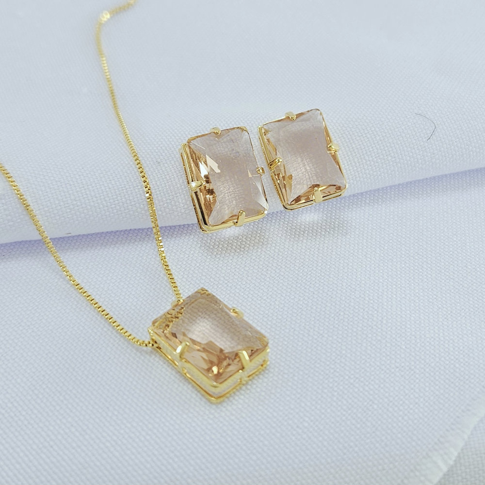 Conjunto retangular base dourada