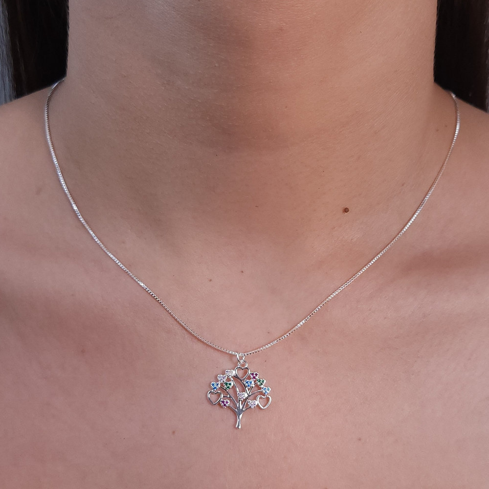 Gargantilha árvore da vida com corações cravejado colorido