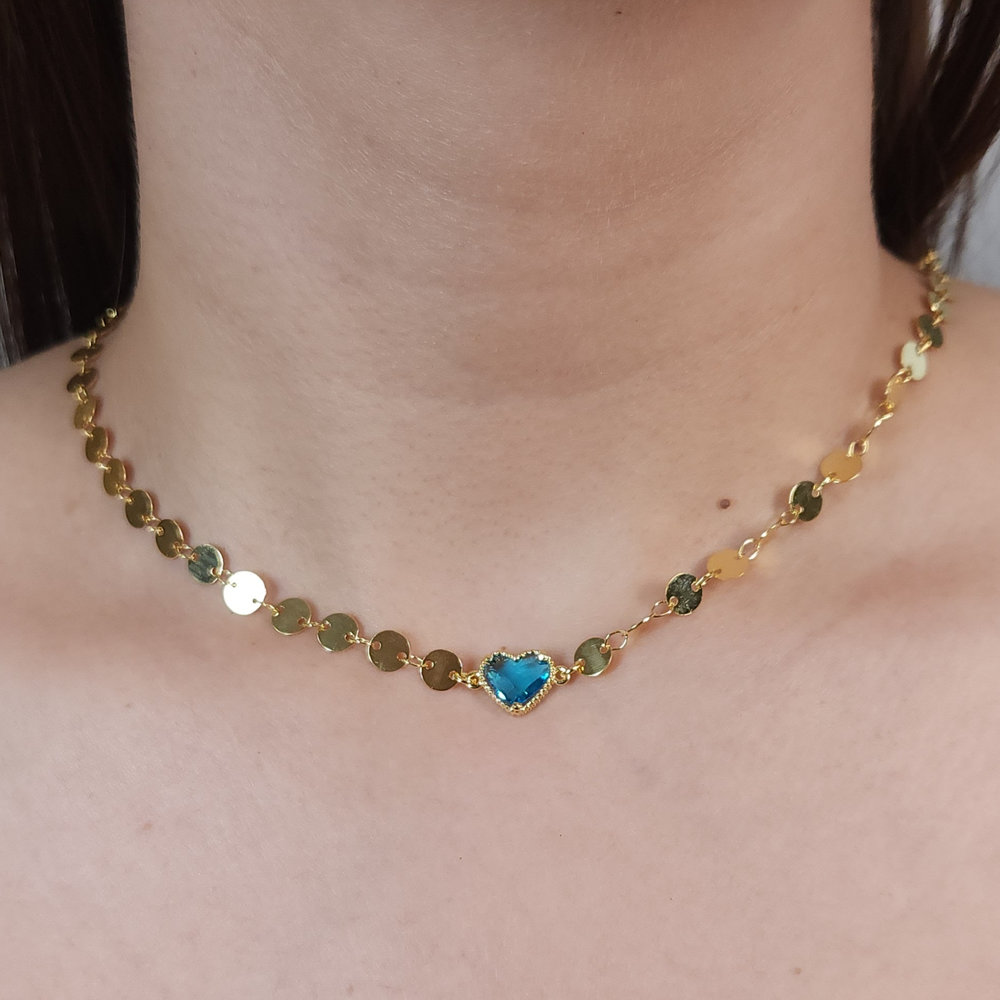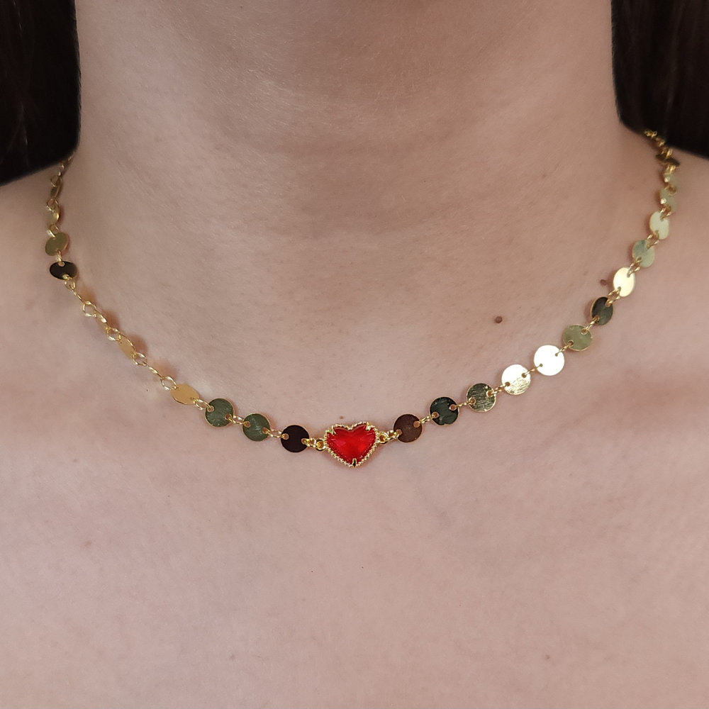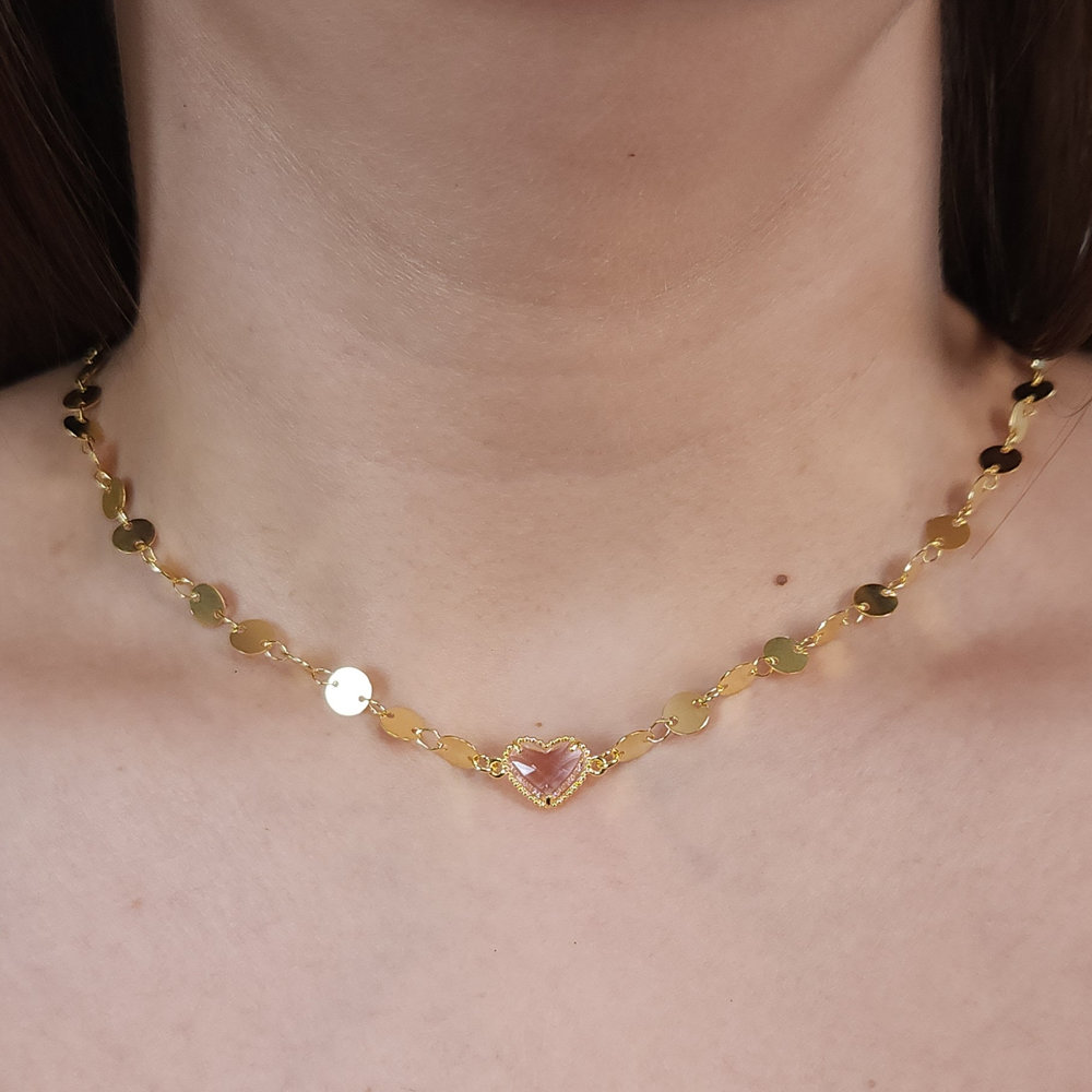 Gargantilha chocker coração cristal elos chapeado