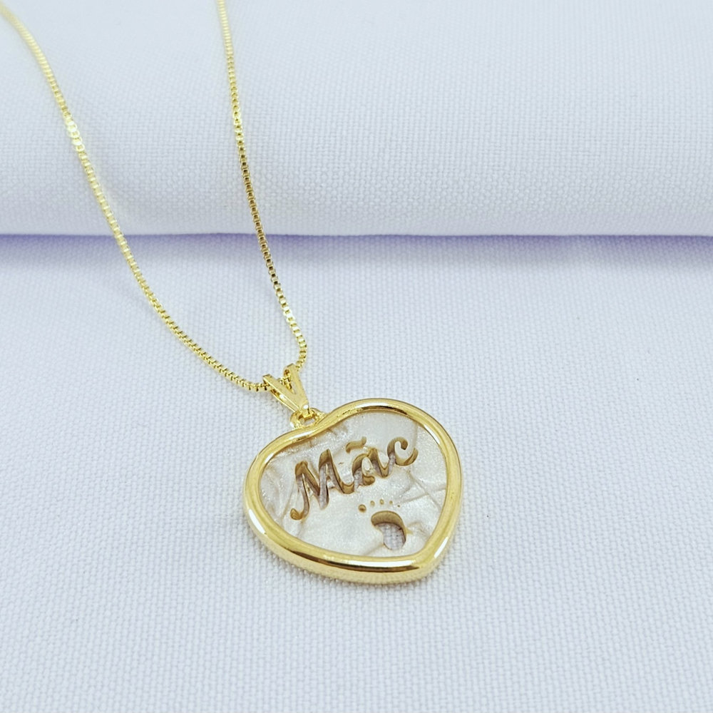Gargantilha coração nome mãe detalhe pezinho
