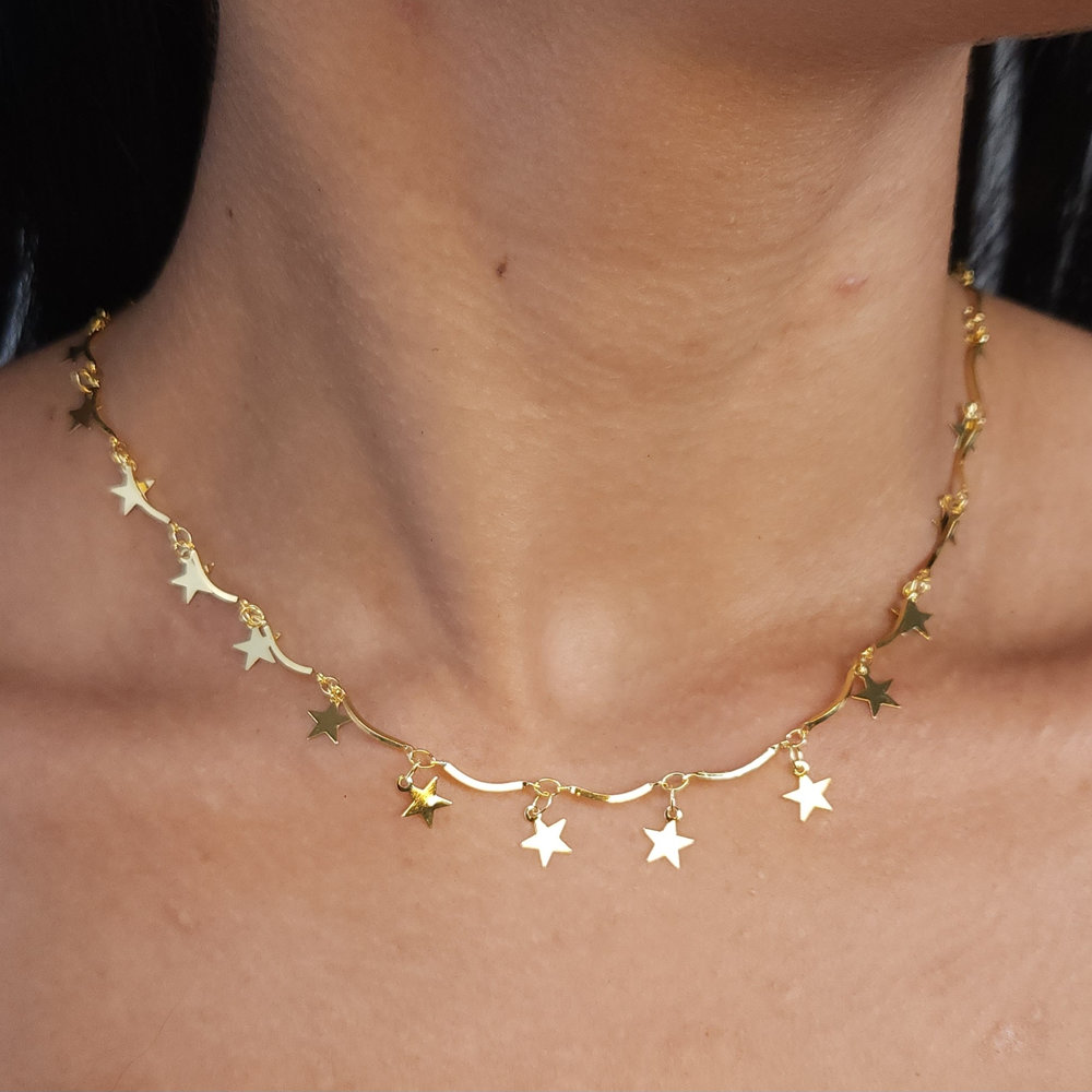 Gargantilha com estrelas dourada lisa