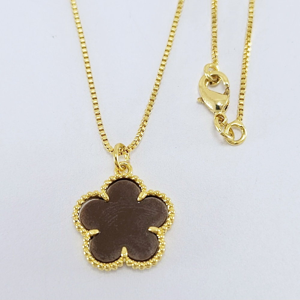 Gargantilha corrente veneziana com pingente trevo na cor marrom.
