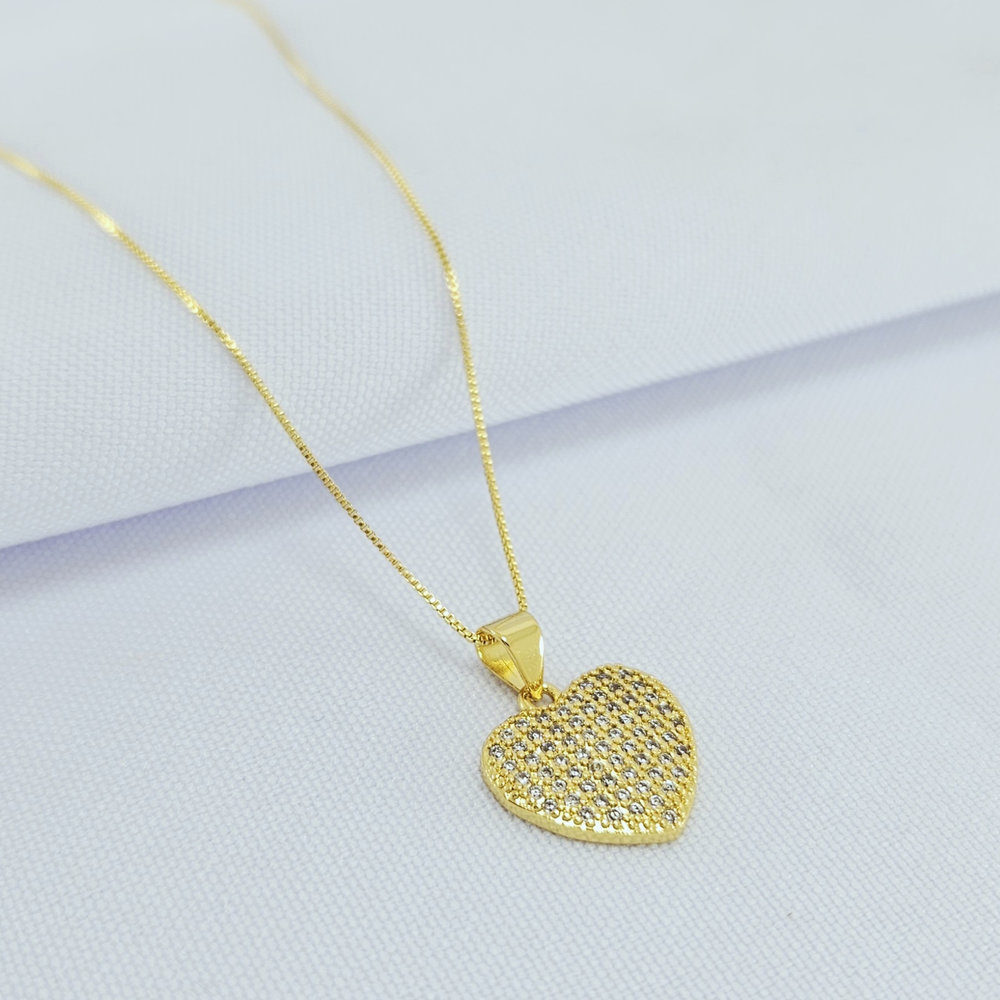 Gargantilha coração cravejado em zircônia