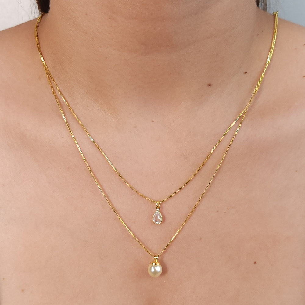 Gargantilha dupla gota cristal com pérola