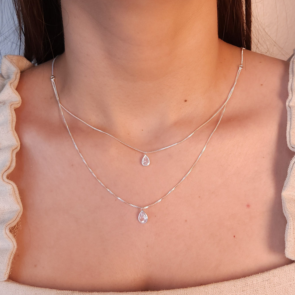 Gargantilha dupla gota cristal