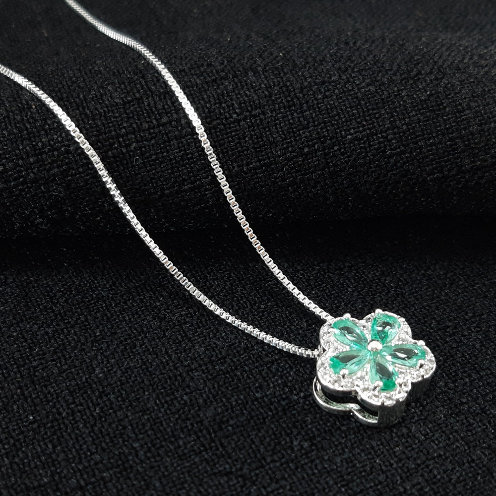 Gargantilha flor verde esmeralda borda cravejada