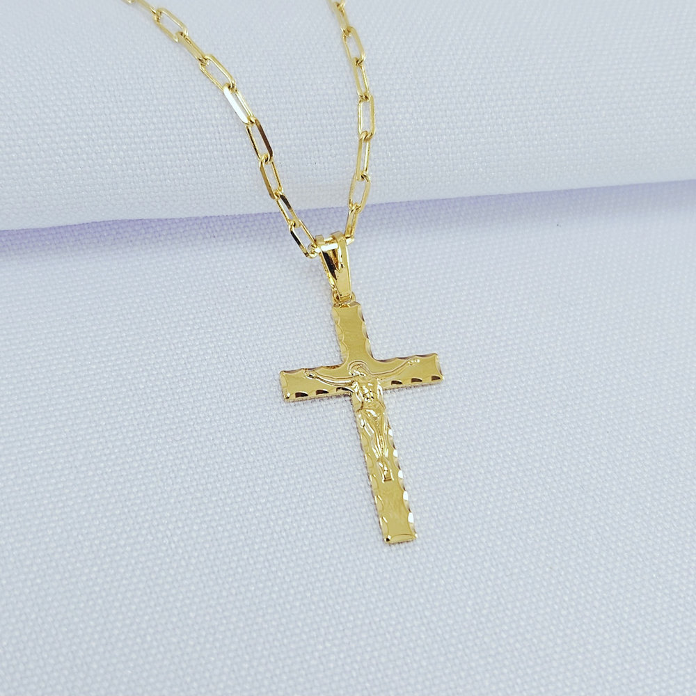 Cordão masculino pingente cruz com Cristo