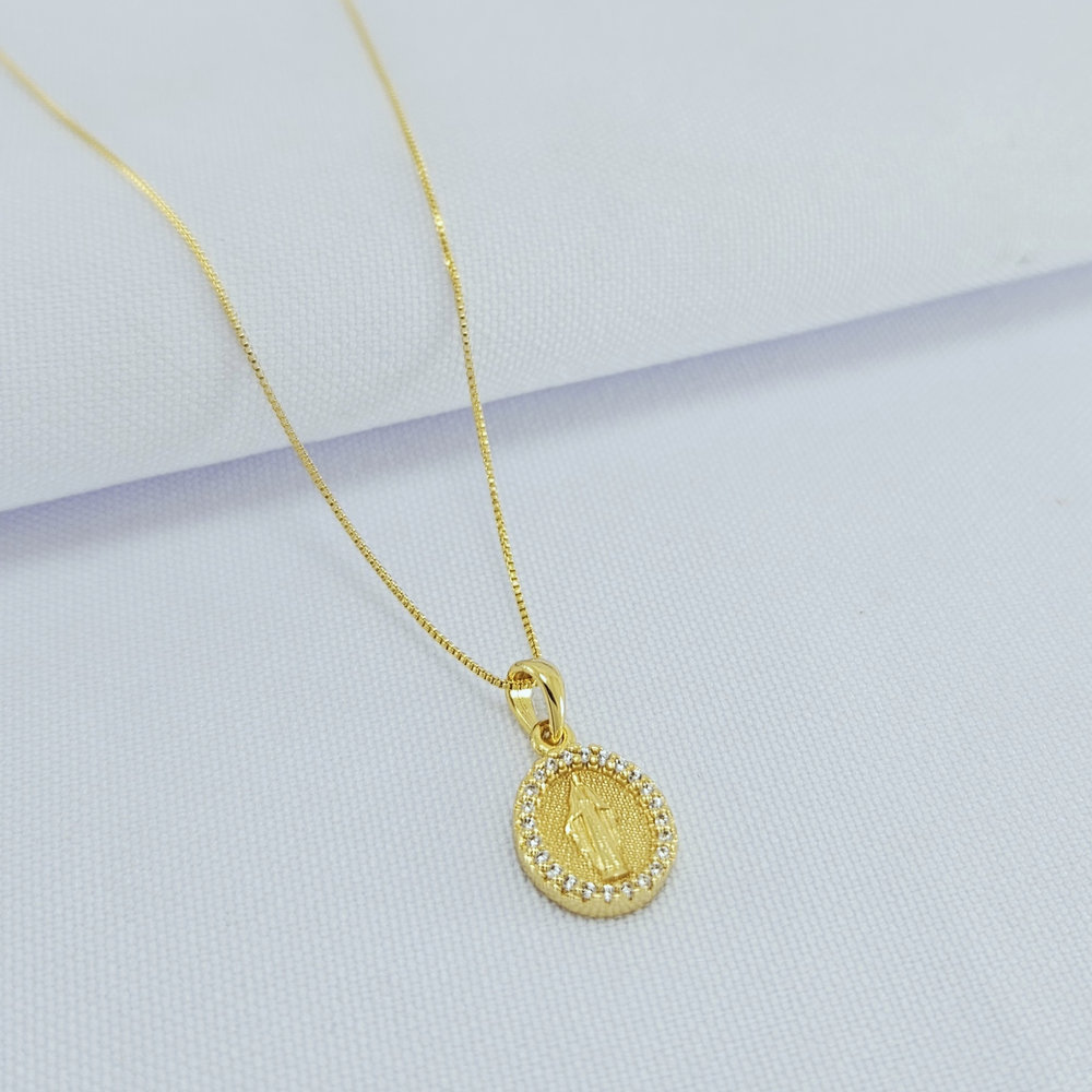 Gargantilha N.S das Graças borda cravejada