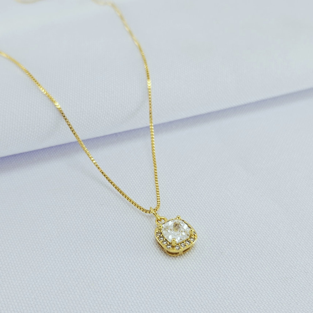 Gargantilha quadrado cristal cravejado