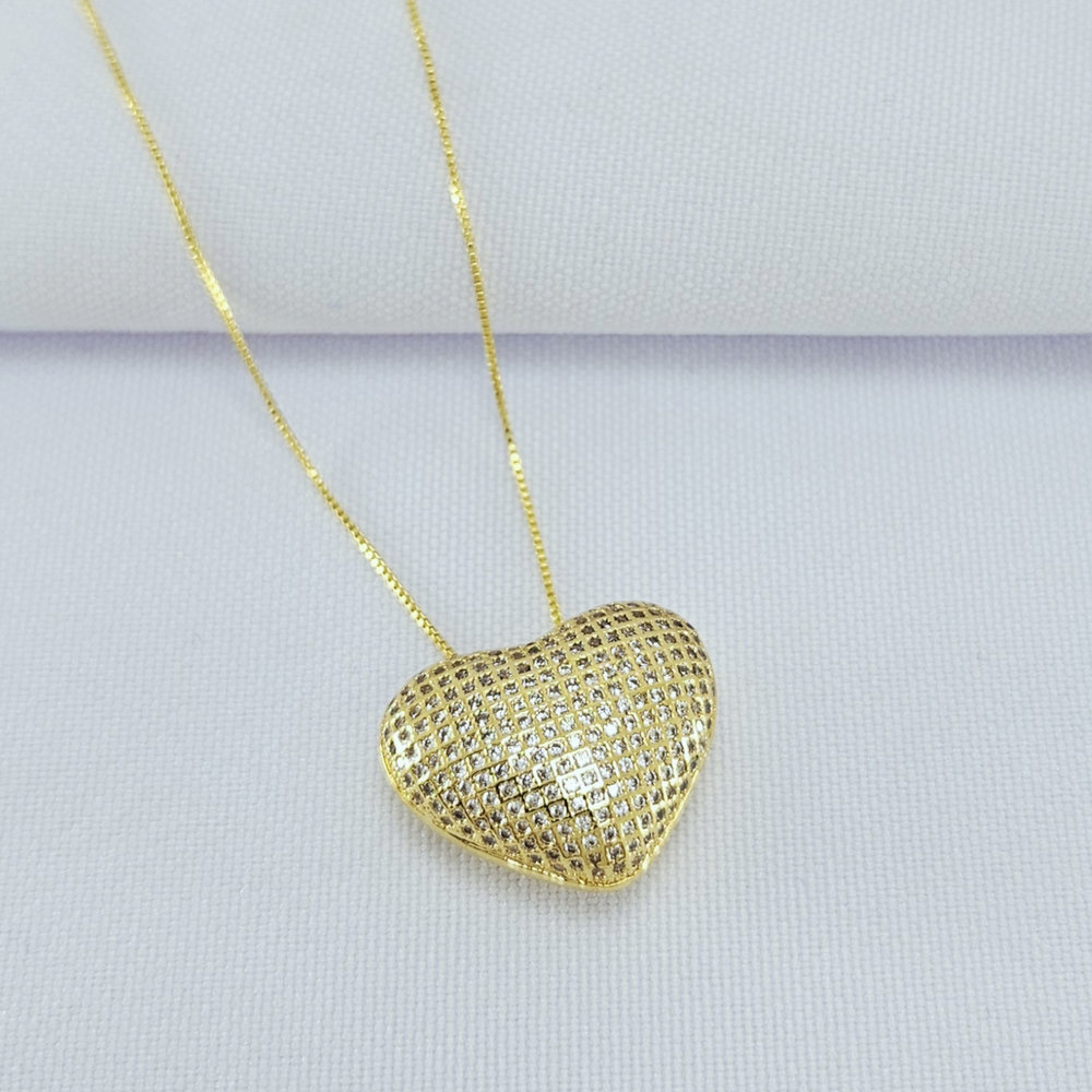 Gargantilha veneziana pingente coração cravejado