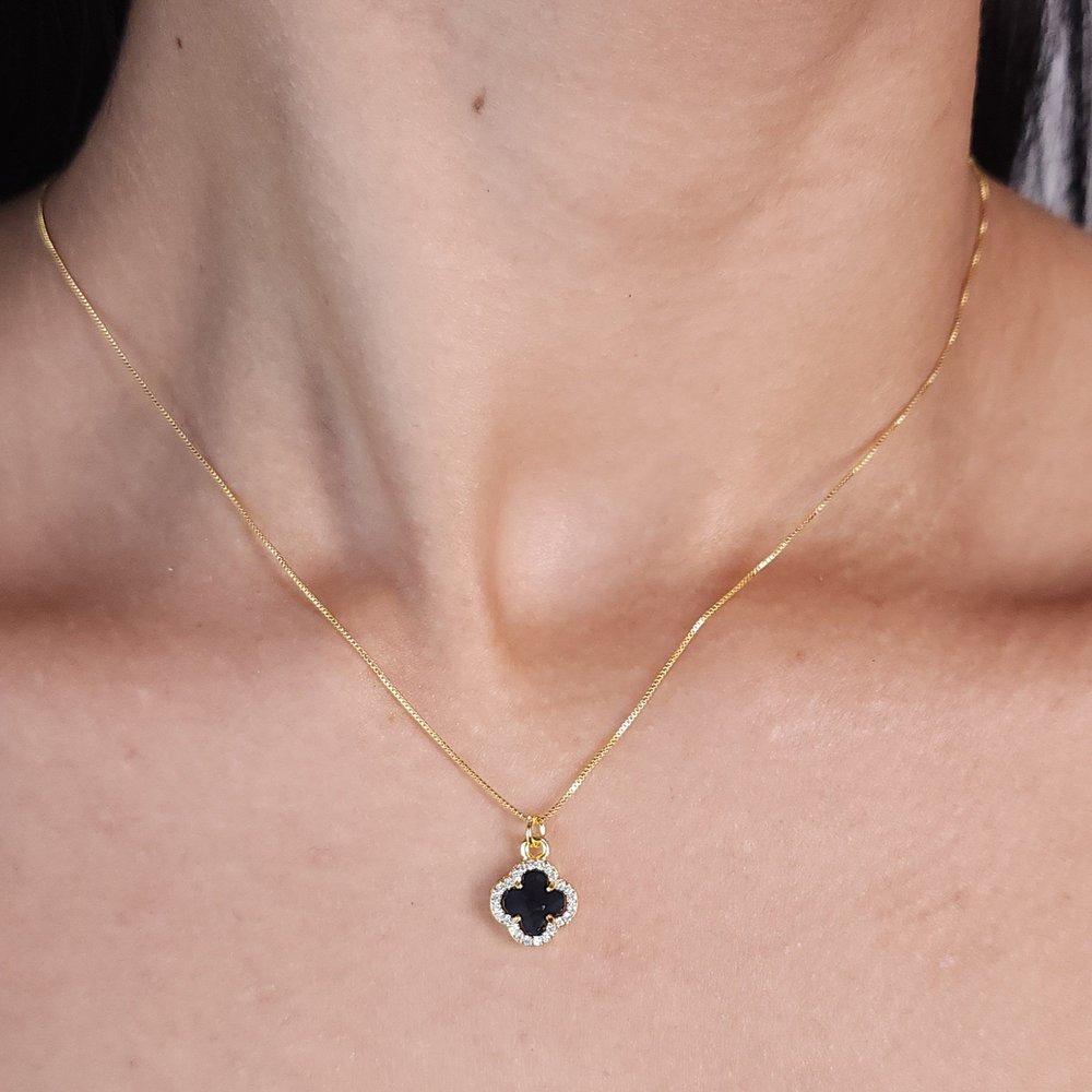 Gargantilha veneziana trevo cravejado