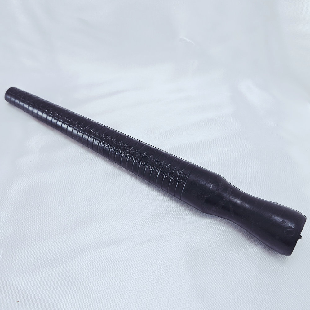 Medidor de anel preto numerado.