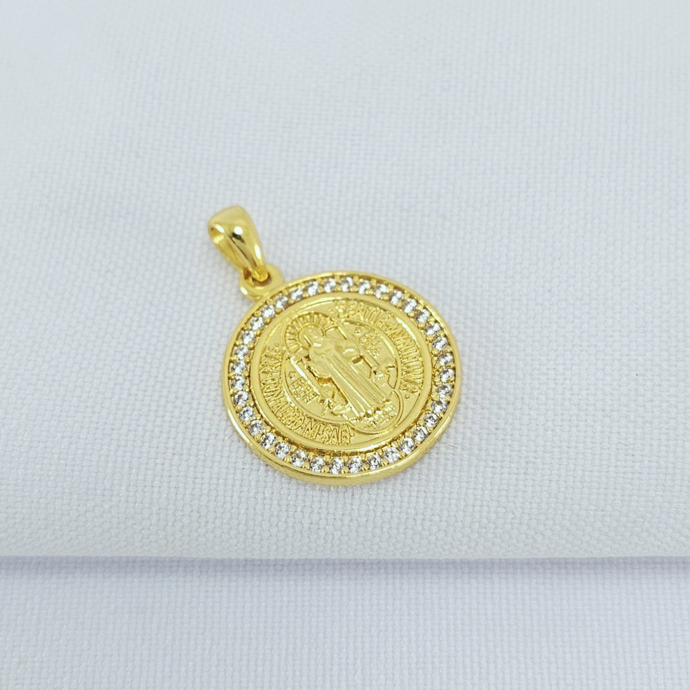 Pingente medalha de São Bento detalhe cravejado