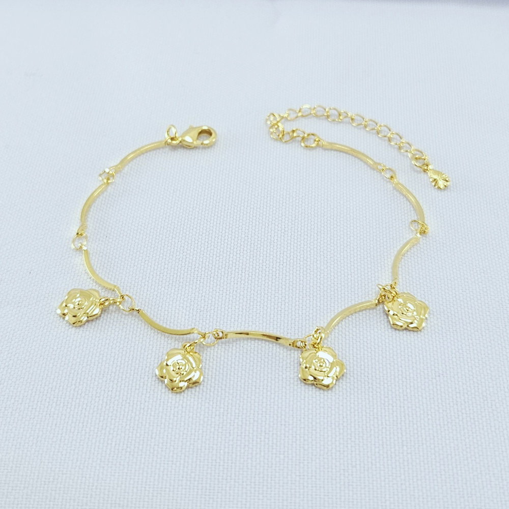 Pulseira caninho com flores detalhada
