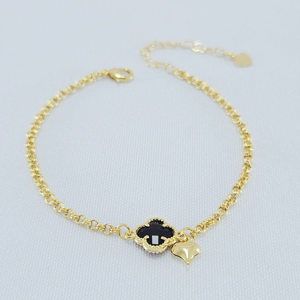 Pulseira com pingente trevo e coração