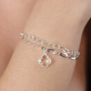 Pulseira dupla elos corações e ovais com trevo pêndulo