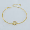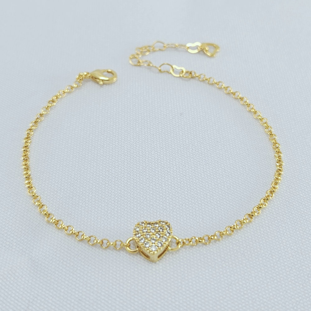 Pulseira elo português com coração cravejado