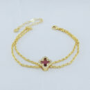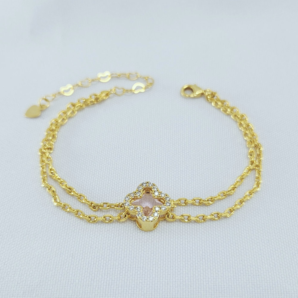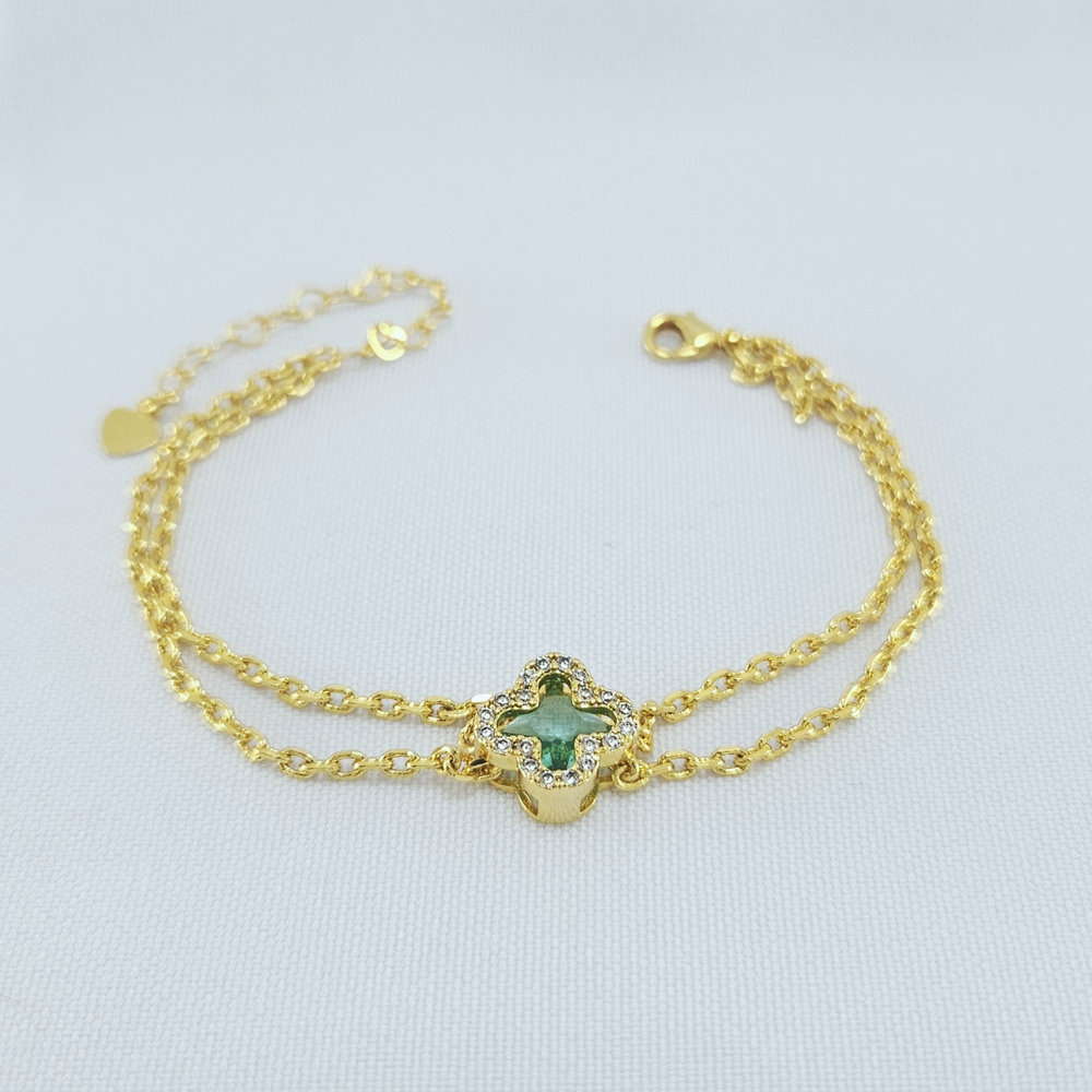 Pulseira elo português duplo detalhe trevo