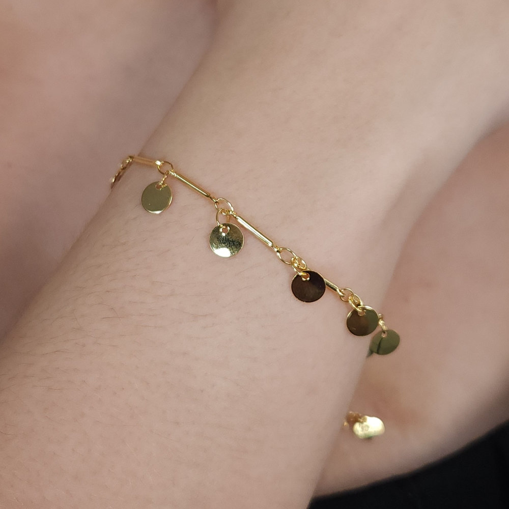 Pulseira elos caninhos com pêndulos redondos lisos
