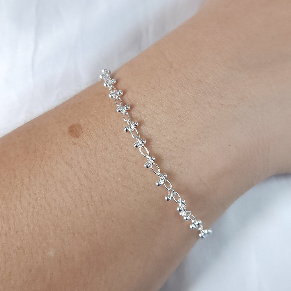 Pulseira elos vazados detalhe bolinhas duplas