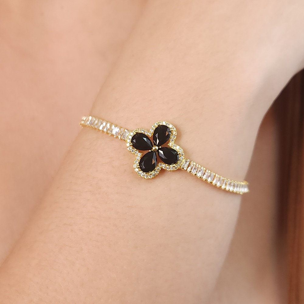 Pulseira fio baguete com trevo preto