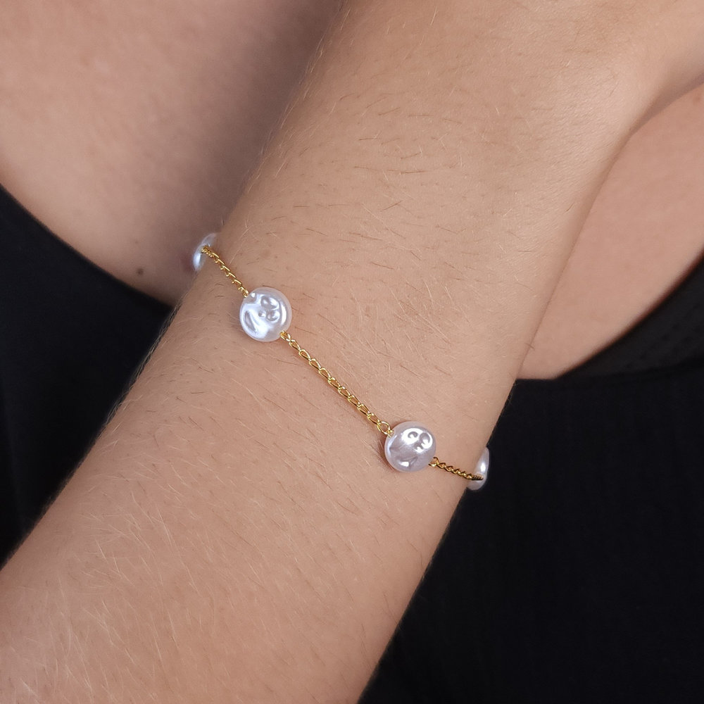 Pulseira pérola detalhe martelado