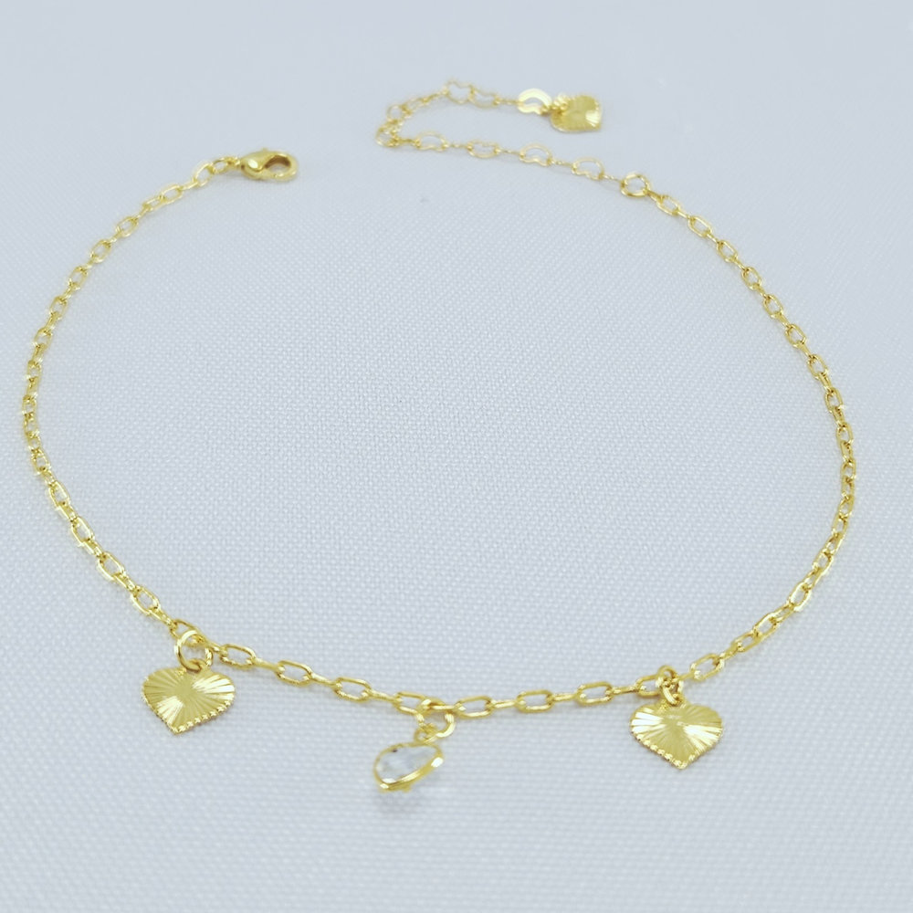 Tornozeleira elos vazados coração cristal e detalhado