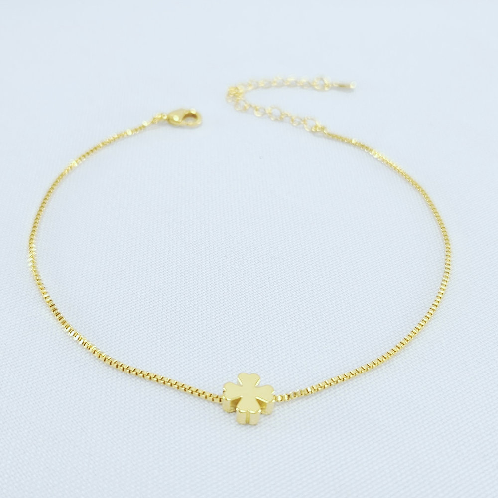 Tornozeleira veneziana com pingente trevo