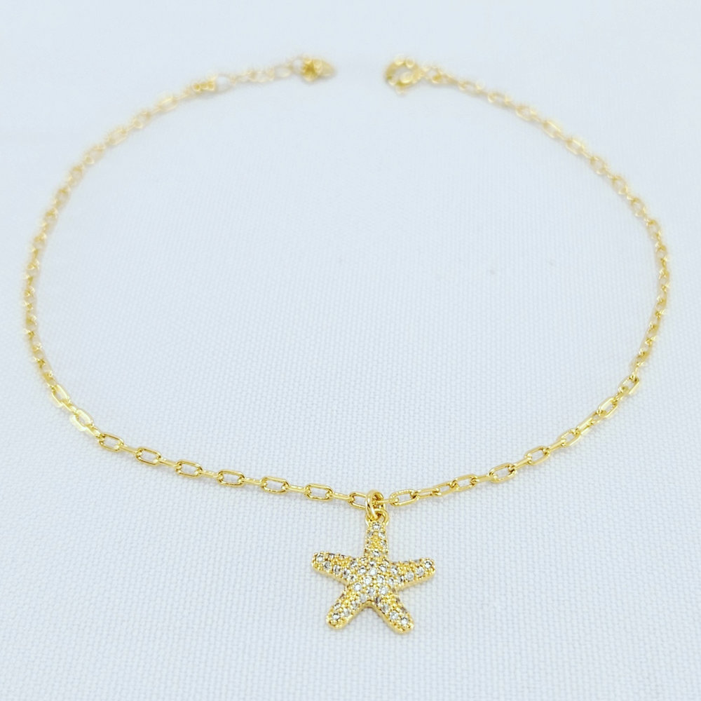 Tornozeleria com estrela do mar cravejada