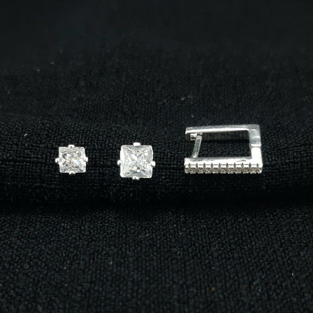 Trio brincos cristais quadrados com argola quadrada