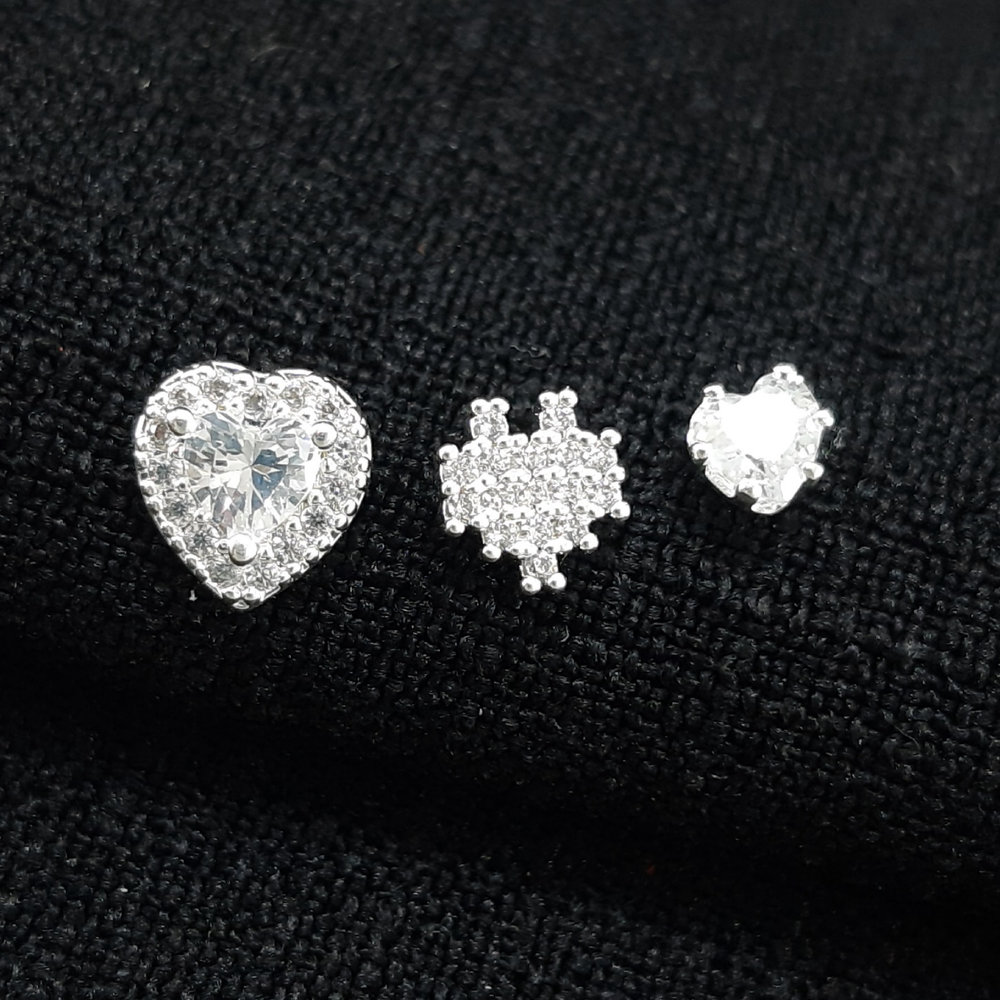 Trio de brinco coração pedra cristal e cravejado