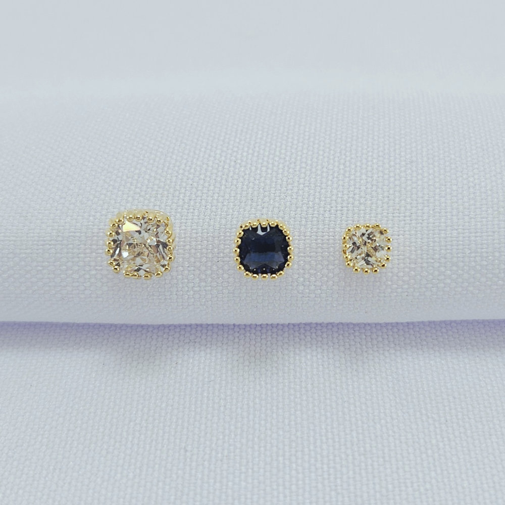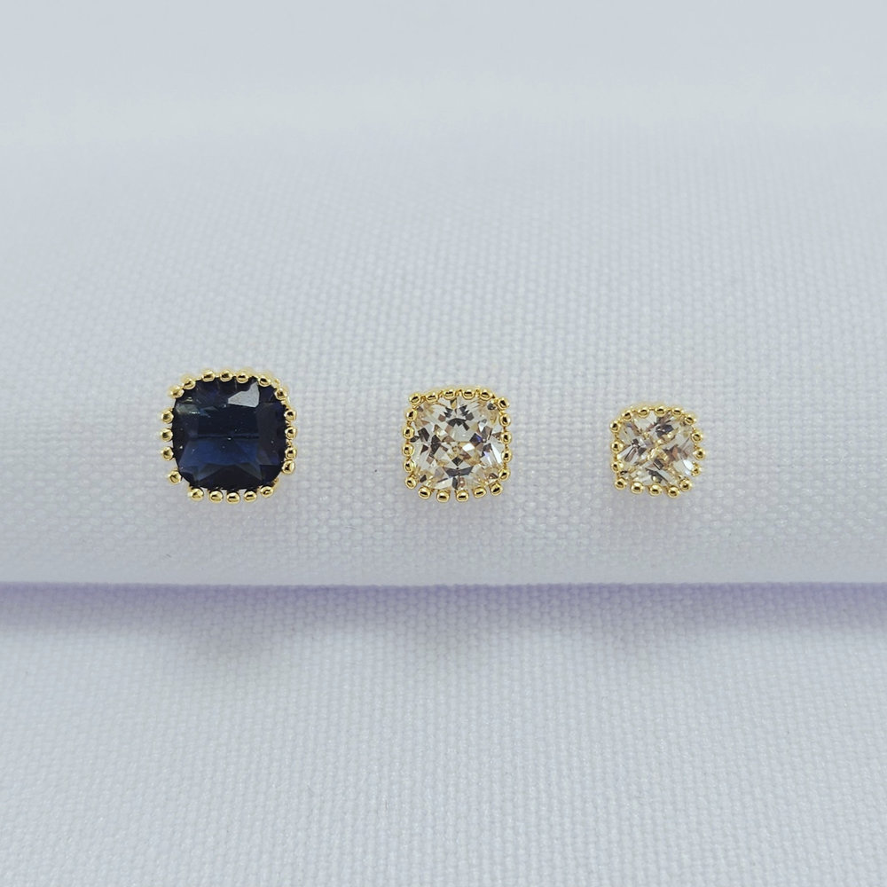 Trio de brincos azul e cristal borda detalhada