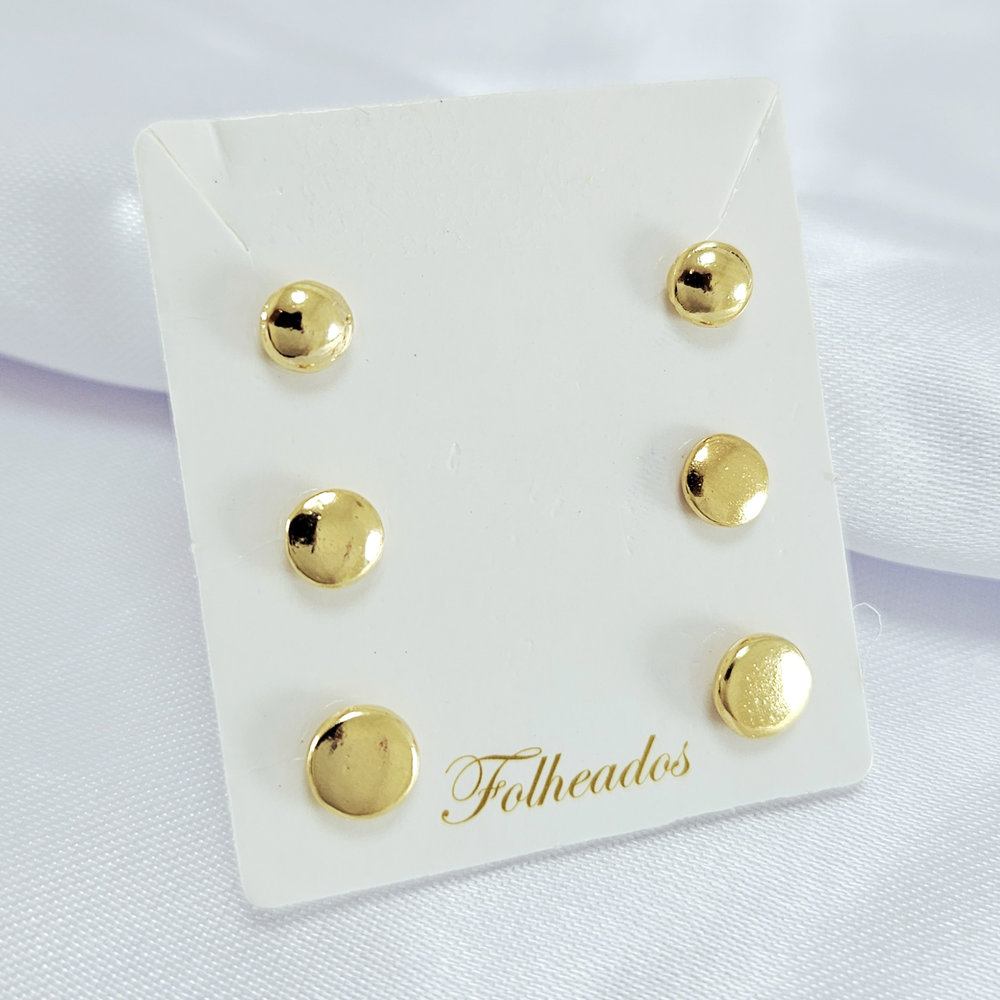 Trio de brincos circulos dourado