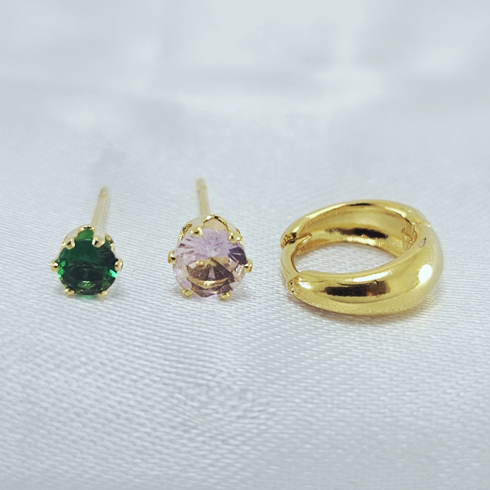 Trio de brincos pontos de luz e argolinha lisa
