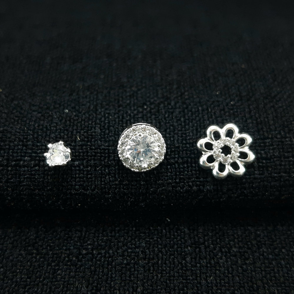 Trio de brincos pontos de luz e flor cristal